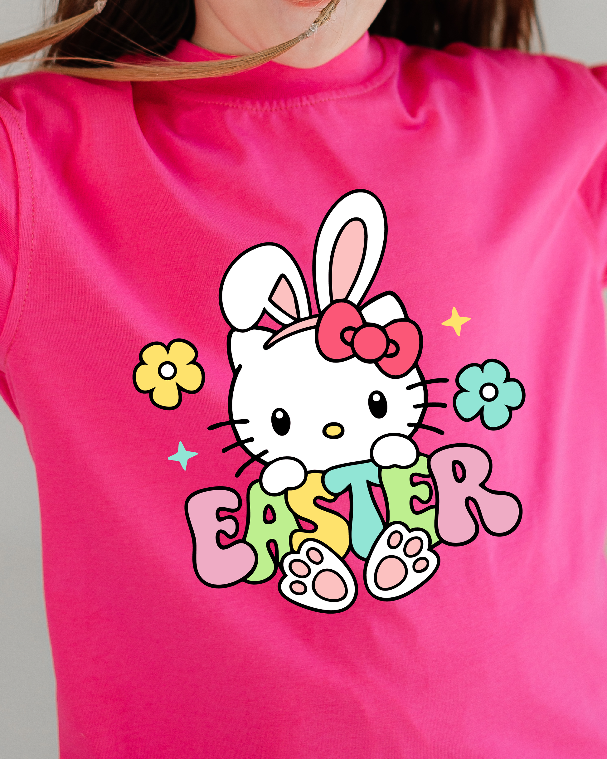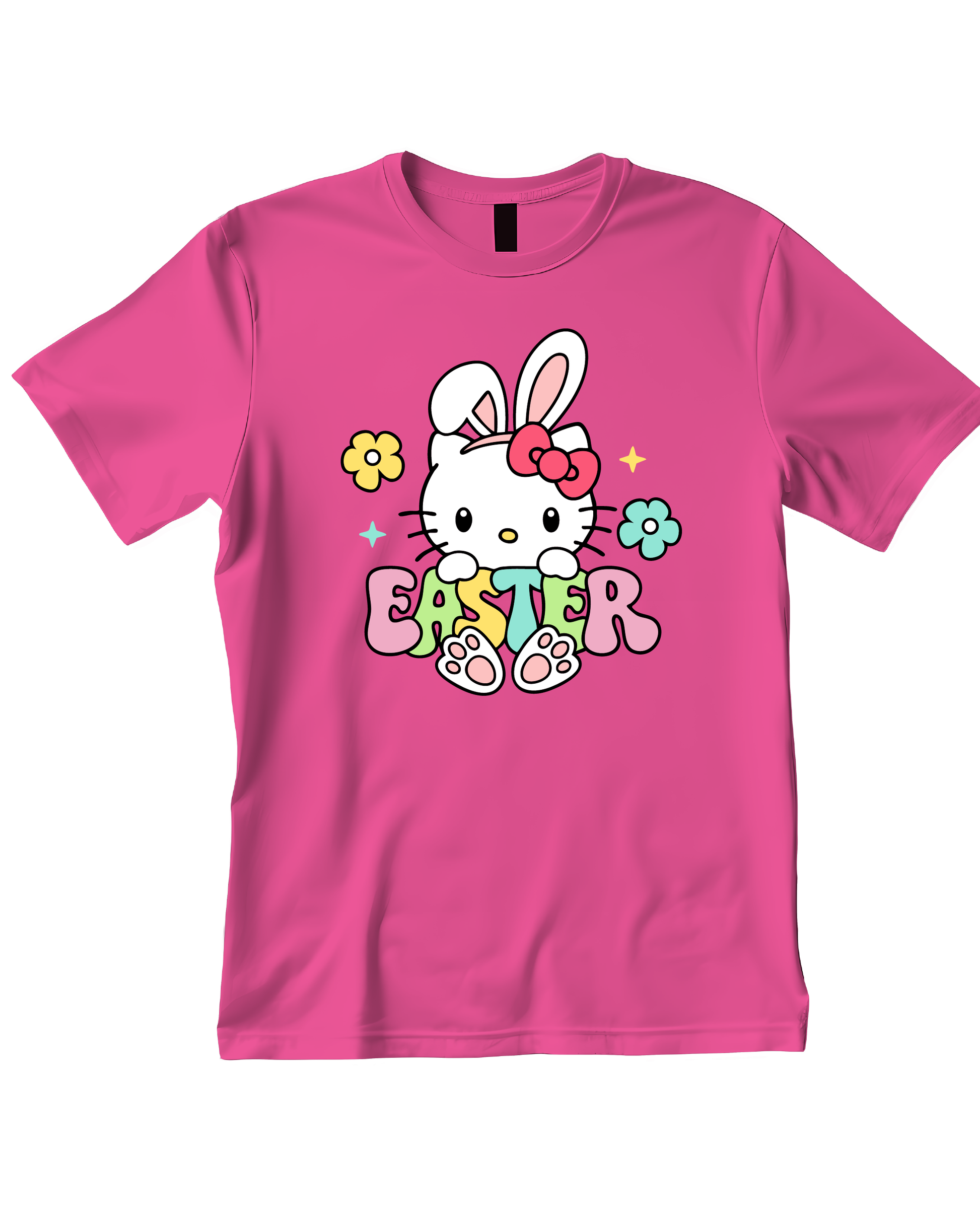 Hermosa playera fucsia con diseño de Hello Kitty Pascua