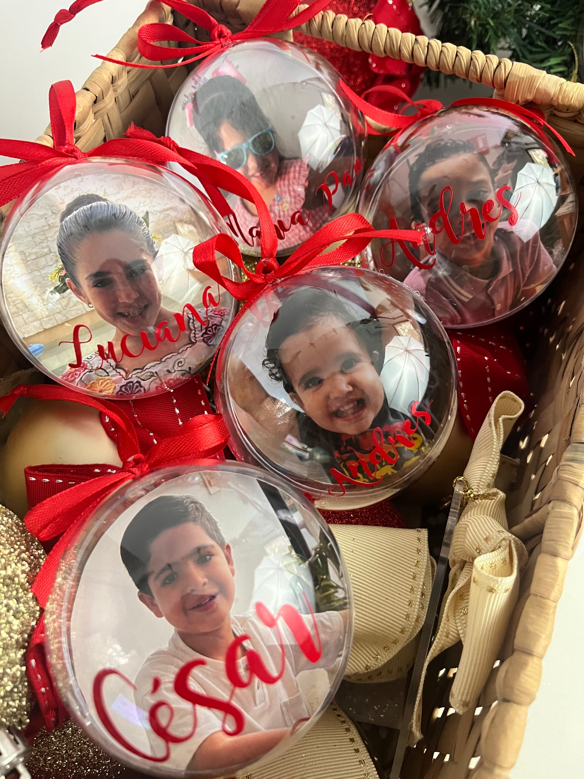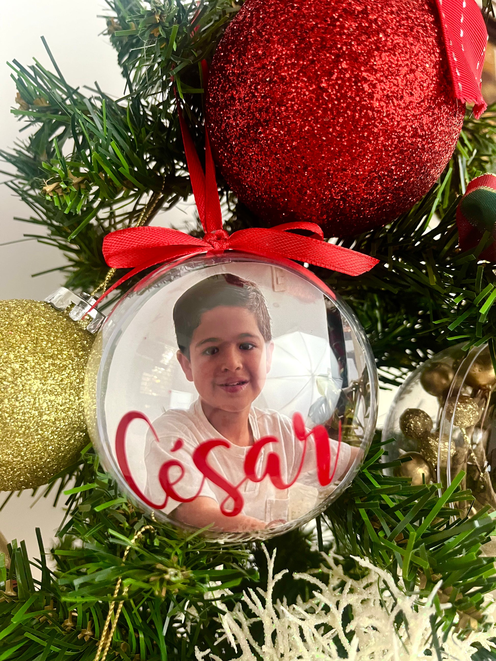 Nuestra esfera con fotografÃa personalizada de 8 cm es ideal para mantener cerca a quienes más quieres durante la Navidad.