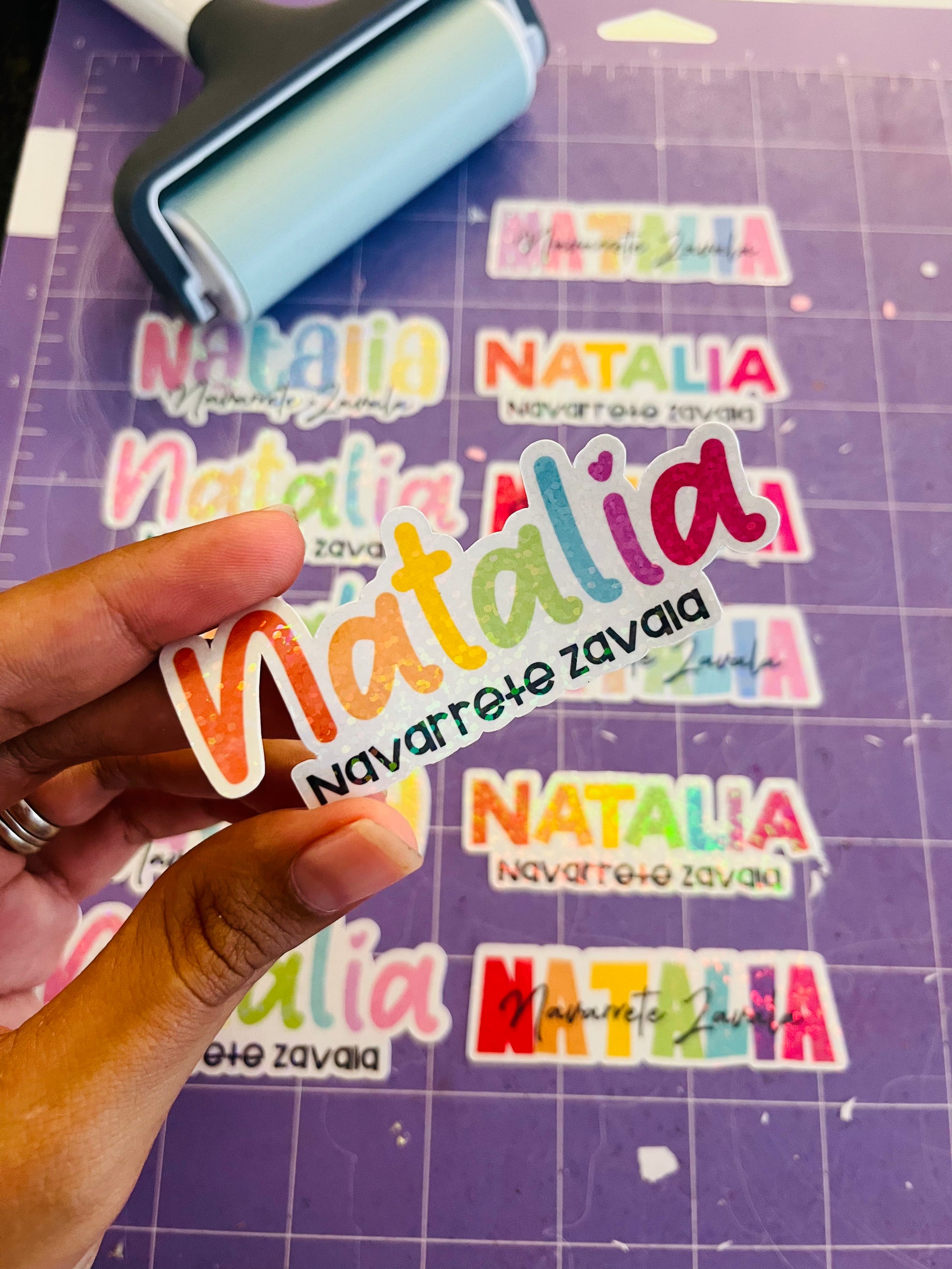 Hermosas etiquetas adhesivas a prueba de agua acabado holográfico, son personalizadas, solo envíanos un correo con los datos.