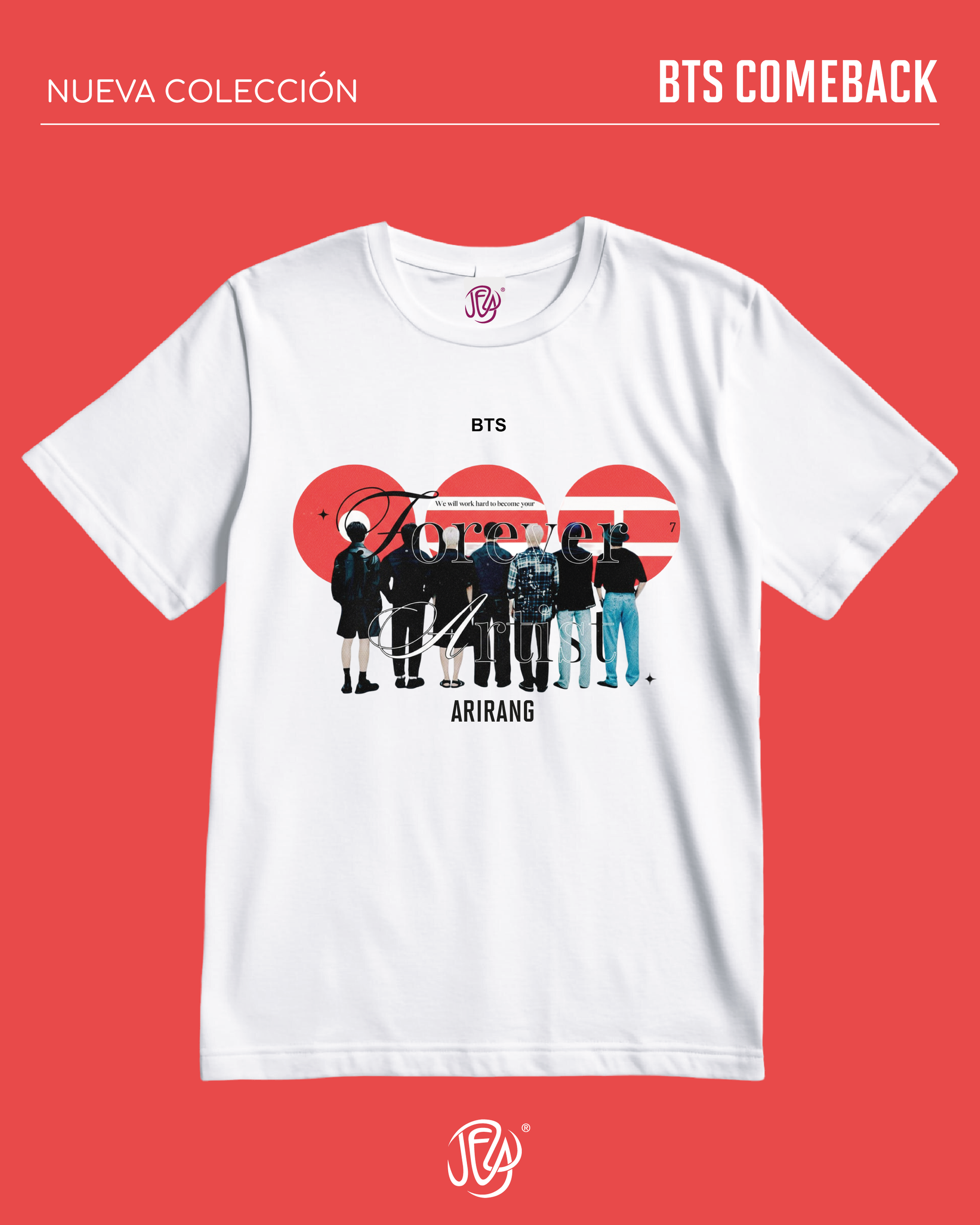 Nuestras playeras están impresas con diseños exclusivos para ARMY, cuidando cada detalle y utilizando impresión de alta calidad para que tu outfit destaque tanto como tu amor por Bangtan.